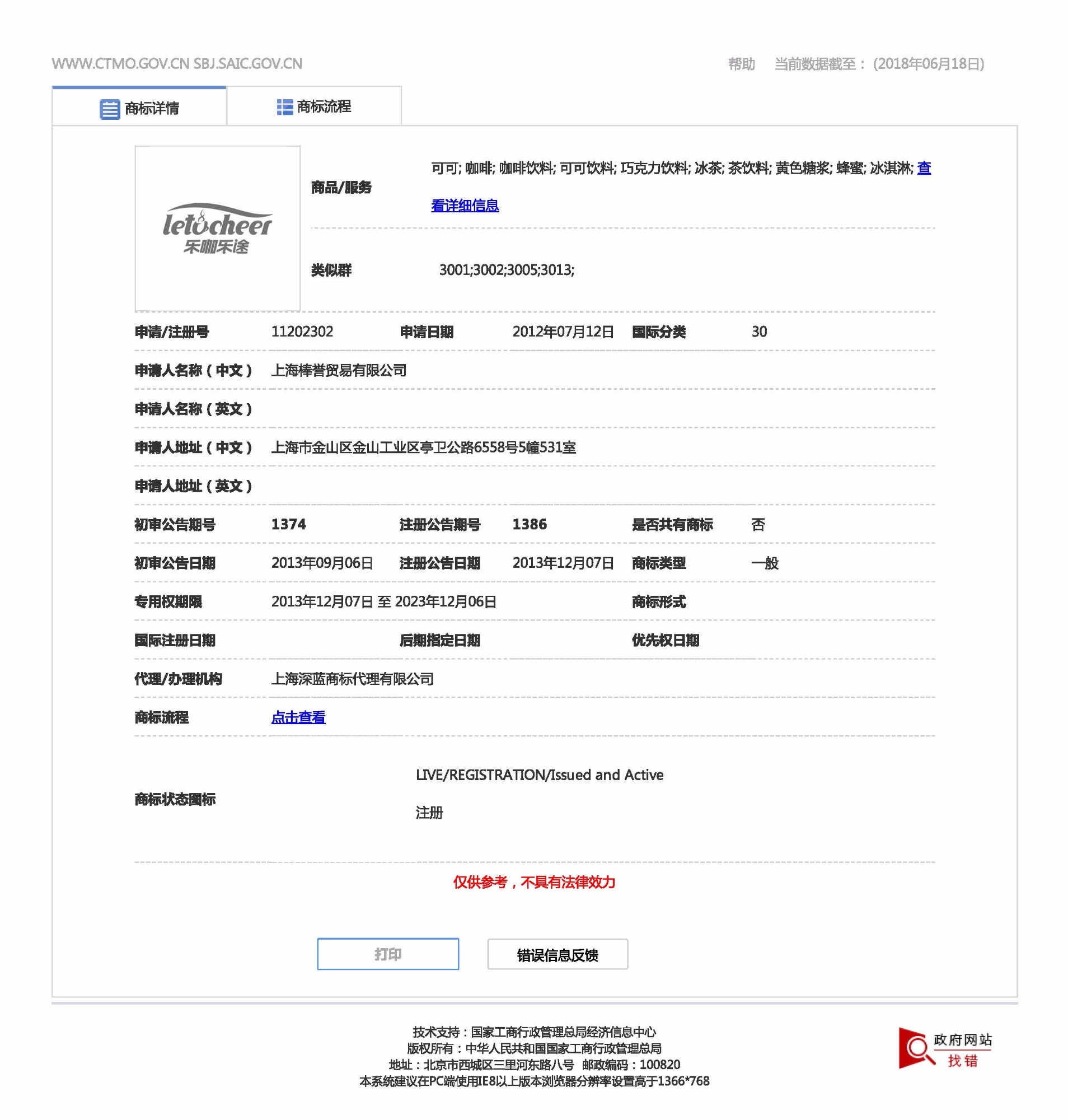 商標(biāo)注冊(cè)證有效期:2013年12月07日 至 2023年12月06日。