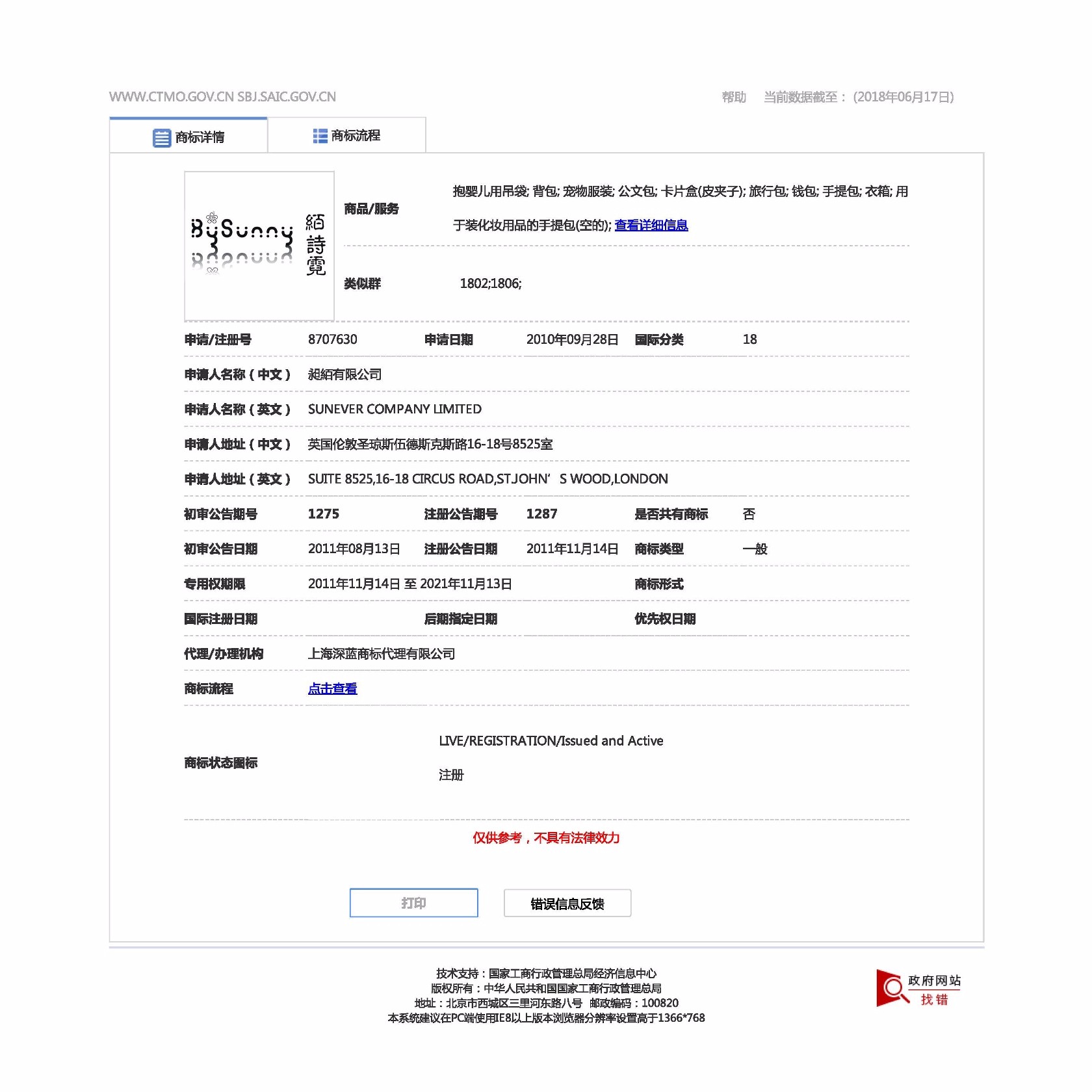 商標注冊地址:英國倫敦圣瓊斯伍德斯克斯路16-18號8525室。